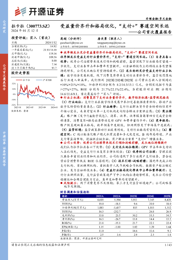 开源证券:拉卡拉(300773)-公司首次覆盖报告:受益量价齐升和格局优化,“支付+”赛道空间长远.pdf