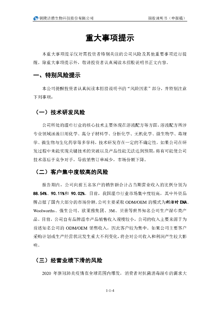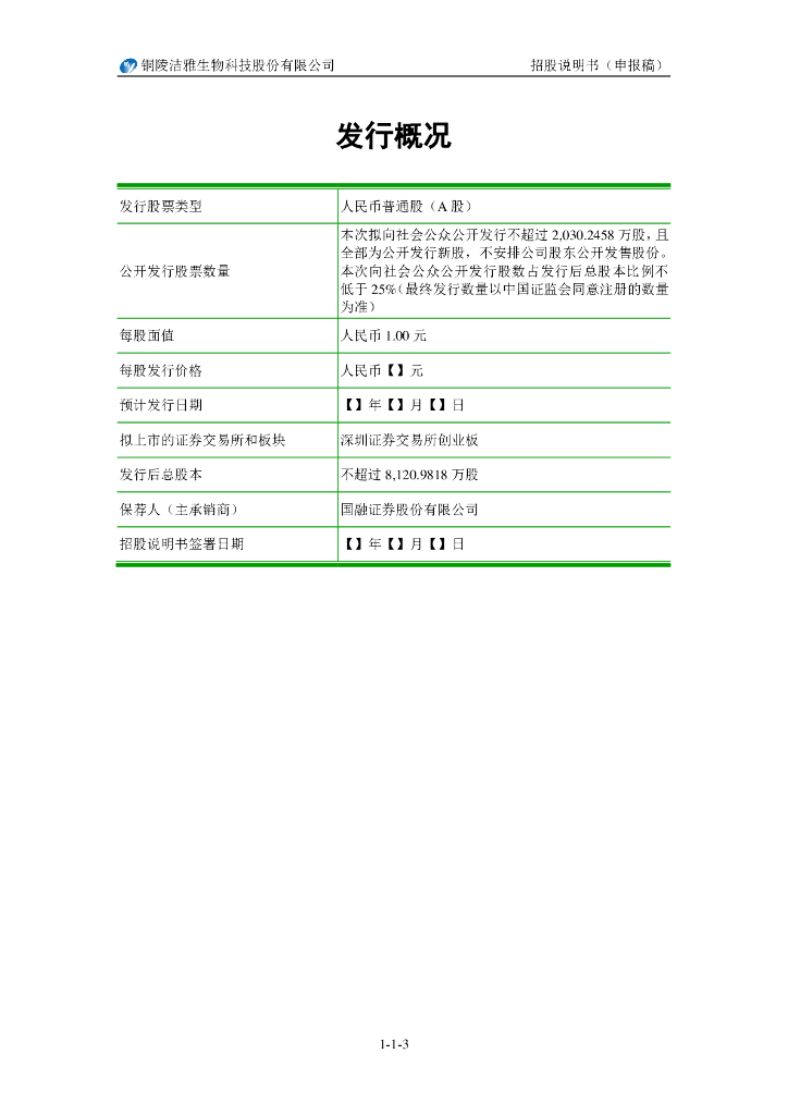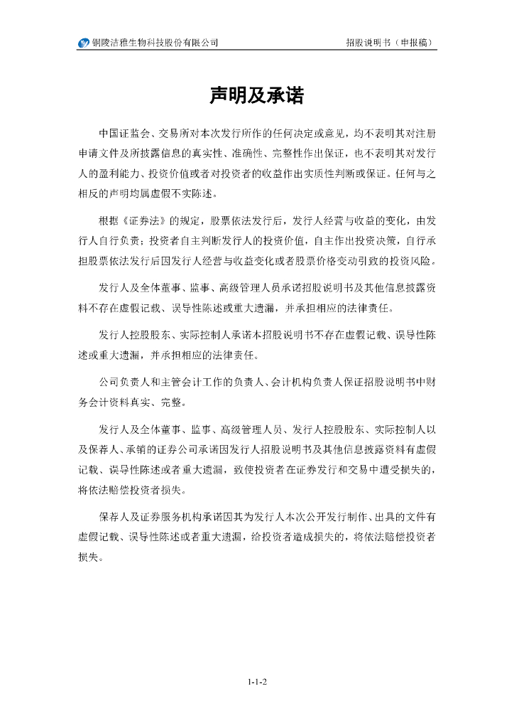 铜陵洁雅生物科技股份有限公司深交所创业板IPO上市招股说明书.pdf