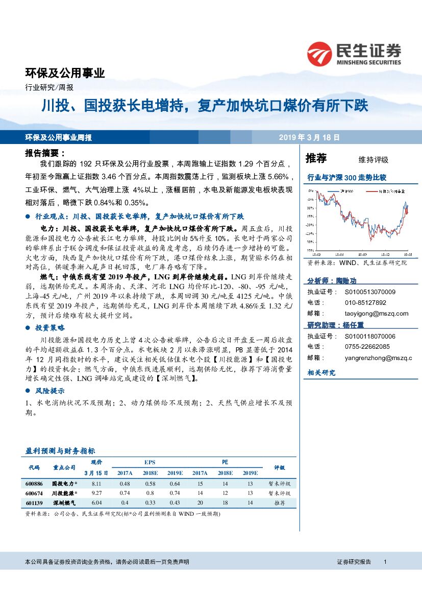 民生证券:环保及公用事业行业研究周报:川投、国投获长电增持,复产加快坑口煤价有所下跌.pdf