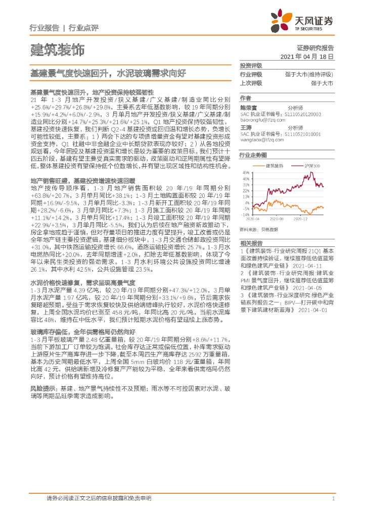 天风证券:建筑装饰行业点评:基建景气度快速回升,水泥玻璃需求向好.pdf