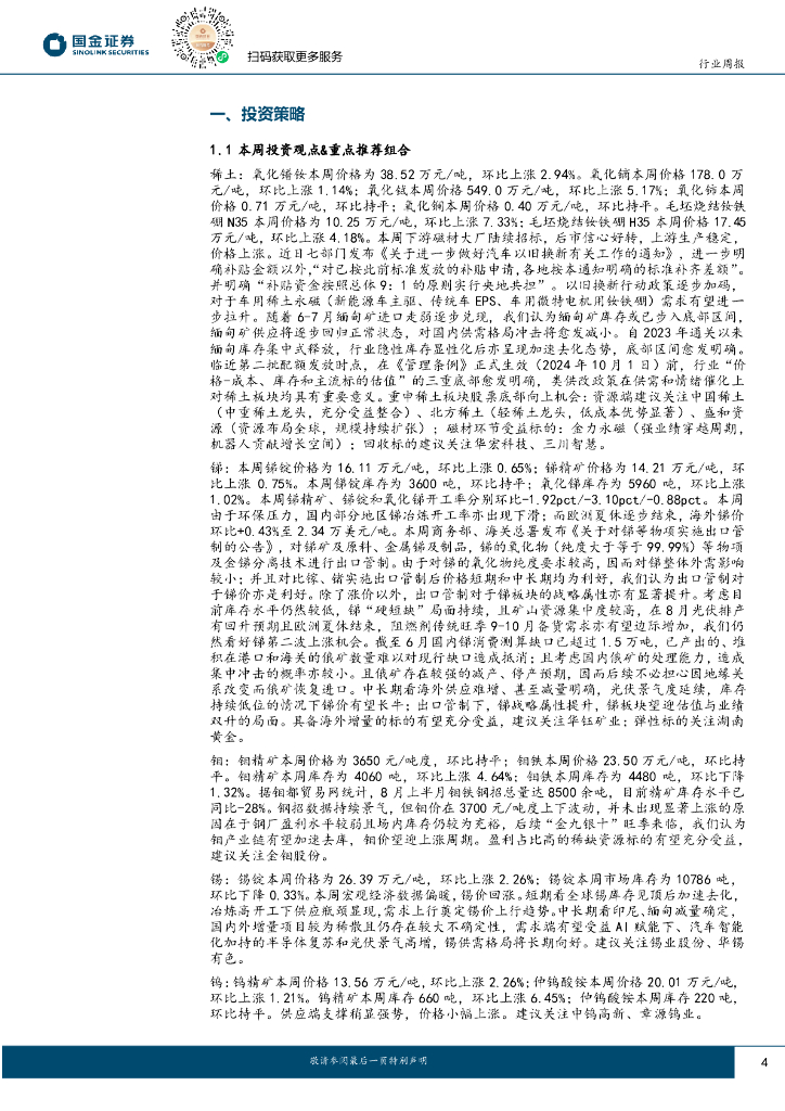 国金证券:有色金属行业研究:稀土&小金属周报:出口管制利好锑价和战略属性,重视钼“金九银十”行情.pdf