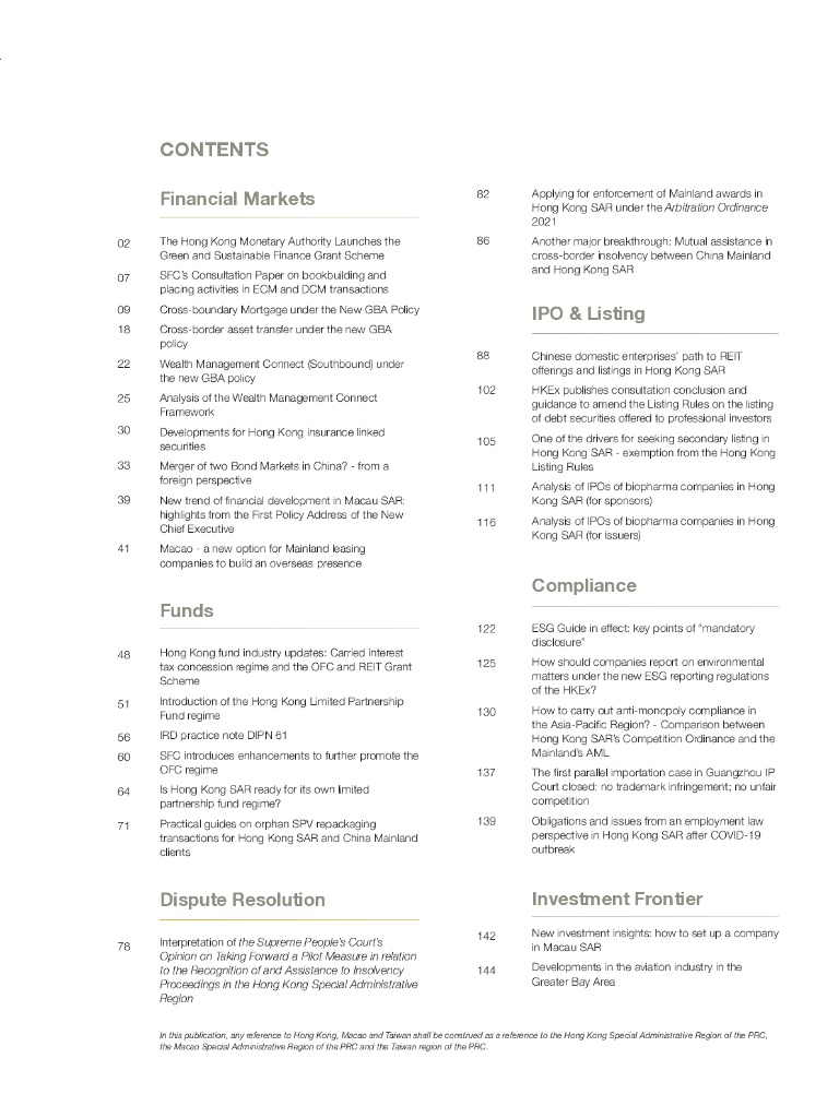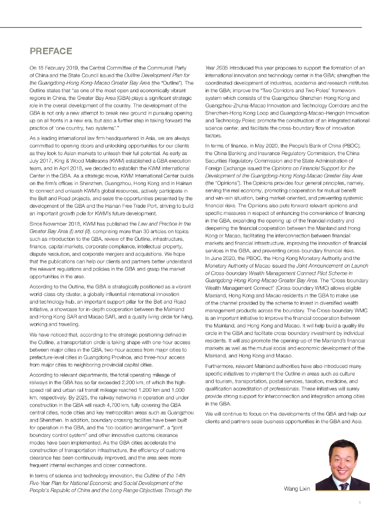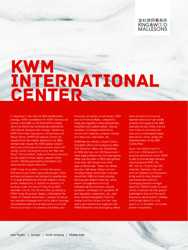 1、打开文档需要使用基本的办公软件,如Word、Office、WPS、Pdf、Cad、Rar、Zip等。 2、如遇下载失败、解压失败、文档缺失等问题,请通过【反馈】按钮提交。金杜律师事务所:金杜观察:粤港澳大湾区的法律与实践III(英文版).pdf
