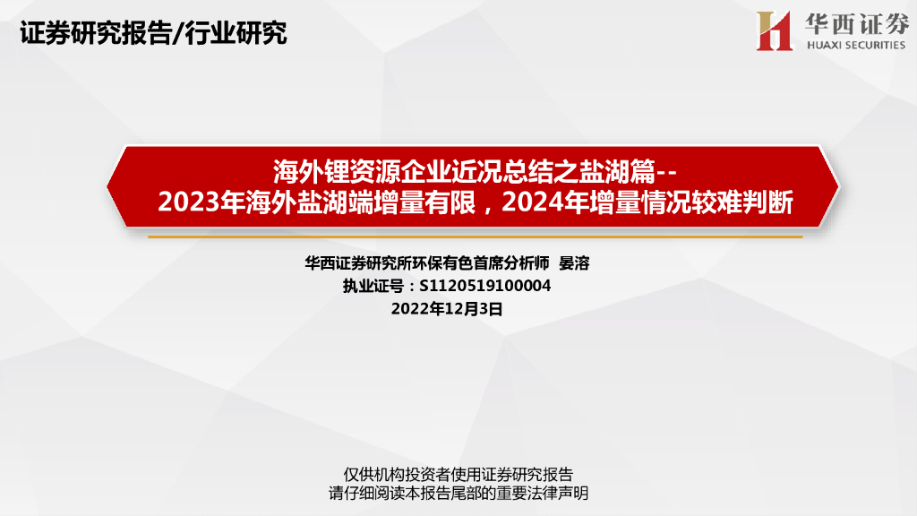 华西证券:环保有色:海外锂资源企业近况总结之盐湖篇--2023年海外盐湖端增量有限,2024年增量情况较难判断.pdf