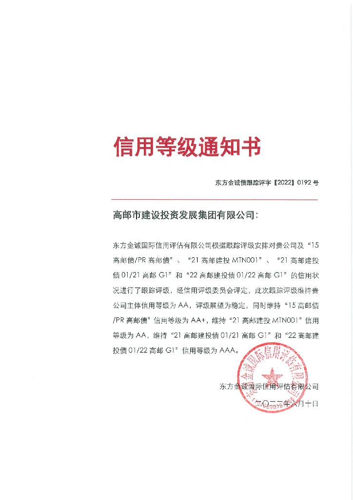 东方金诚:高邮市建设投资发展集团有限公司主体及相关债项2022年度跟踪评级报告.pdf