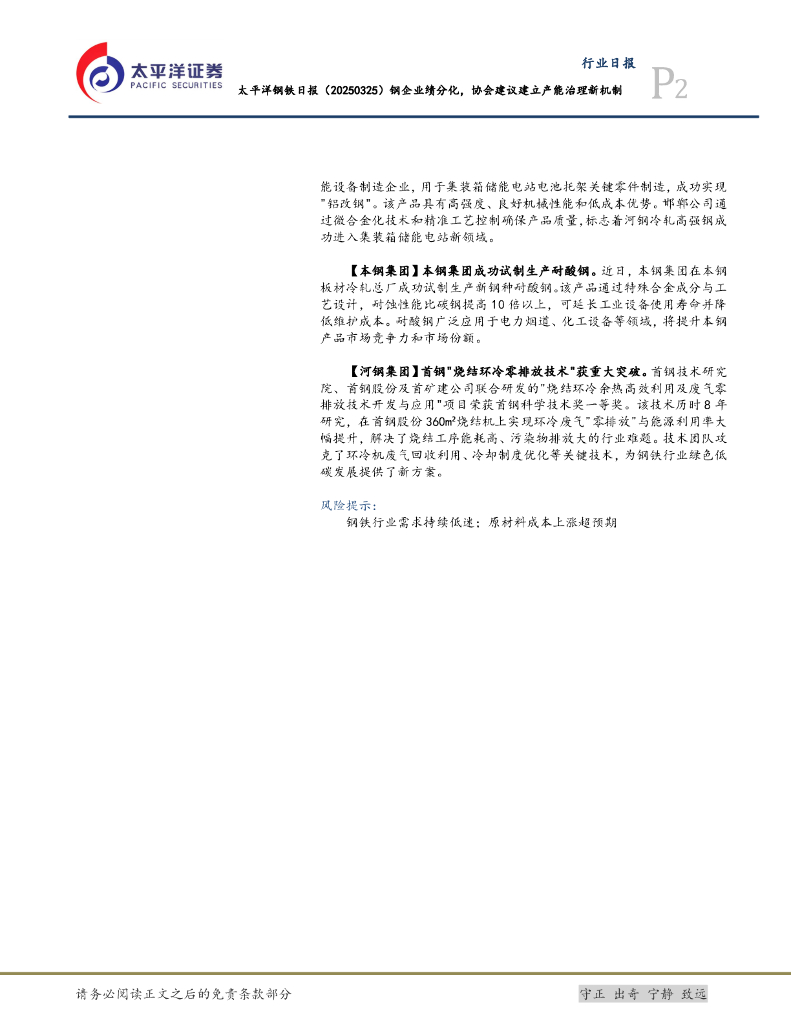 太平洋证券:钢铁日报:钢企业绩分化,协会建议建立产能治理新机制.pdf