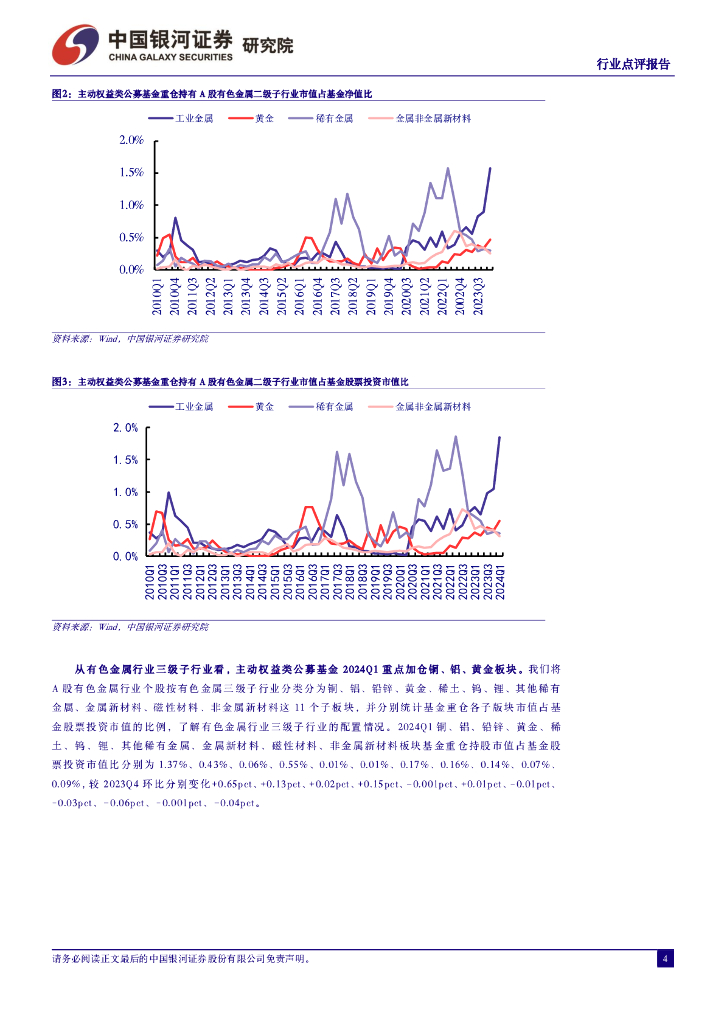 中国银河:有色金属行业2024Q1基金持仓分析:主动权益类基金大幅增持有色行业,重点加仓铜板块.pdf