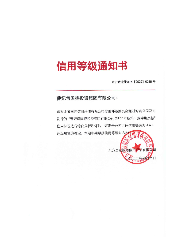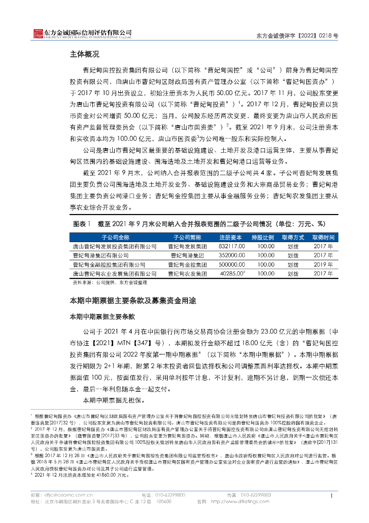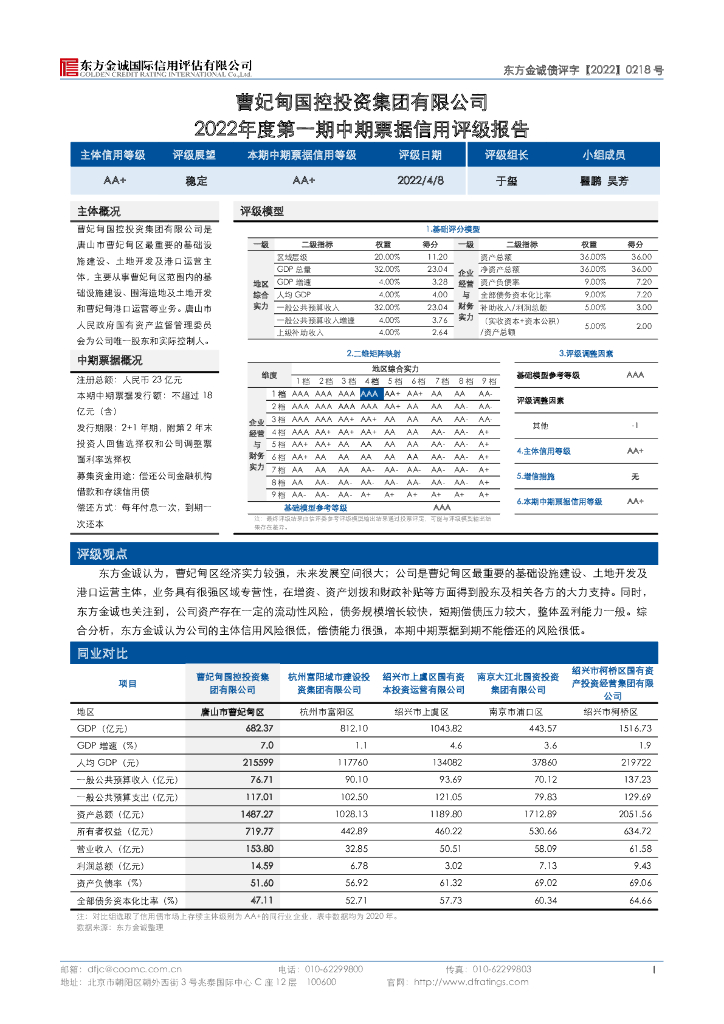 东方金诚:曹妃甸国控投资集团有限公司2022年度第一期中期票据信用评级报告.pdf