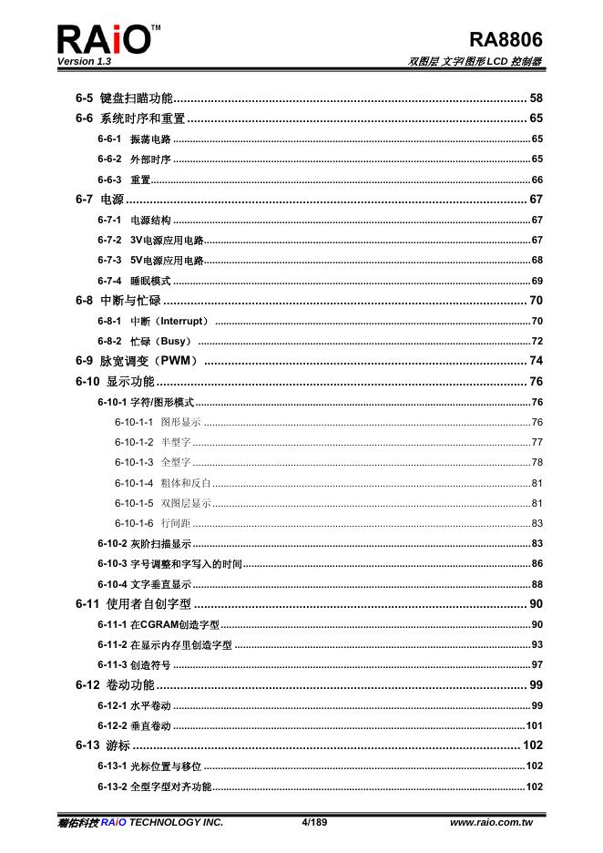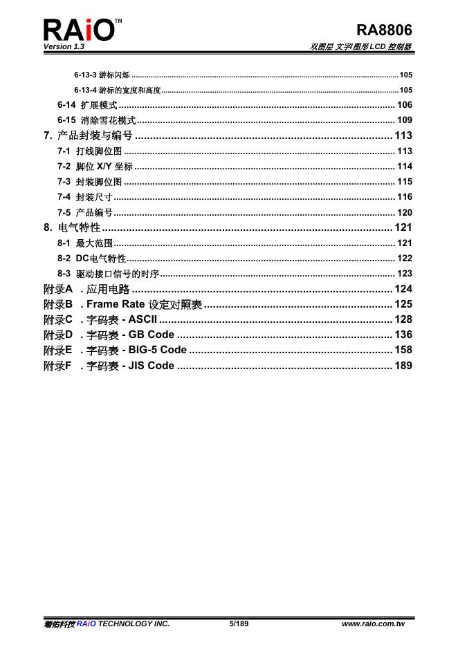 RAiO RA8806 双图层 文字/图形 LCD 控制器 规格书.pdf