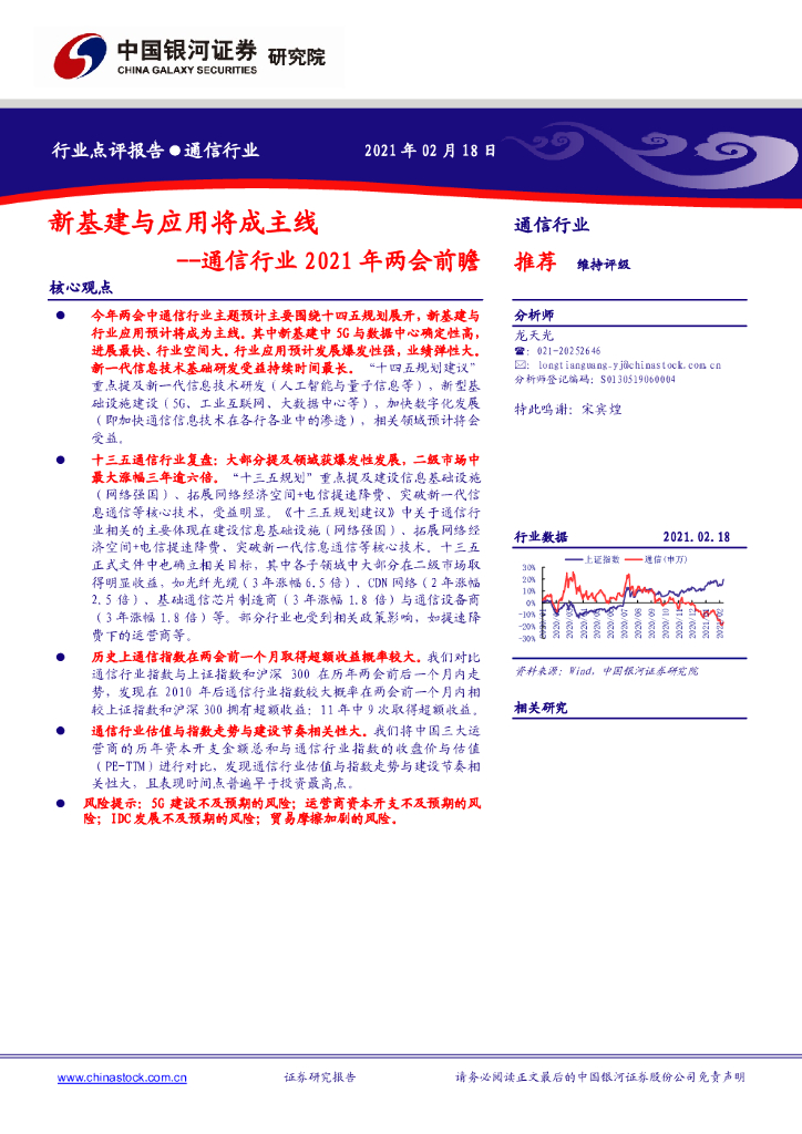 中国银河:通信行业2021年两会前瞻:新基建与应用将成主线.pdf