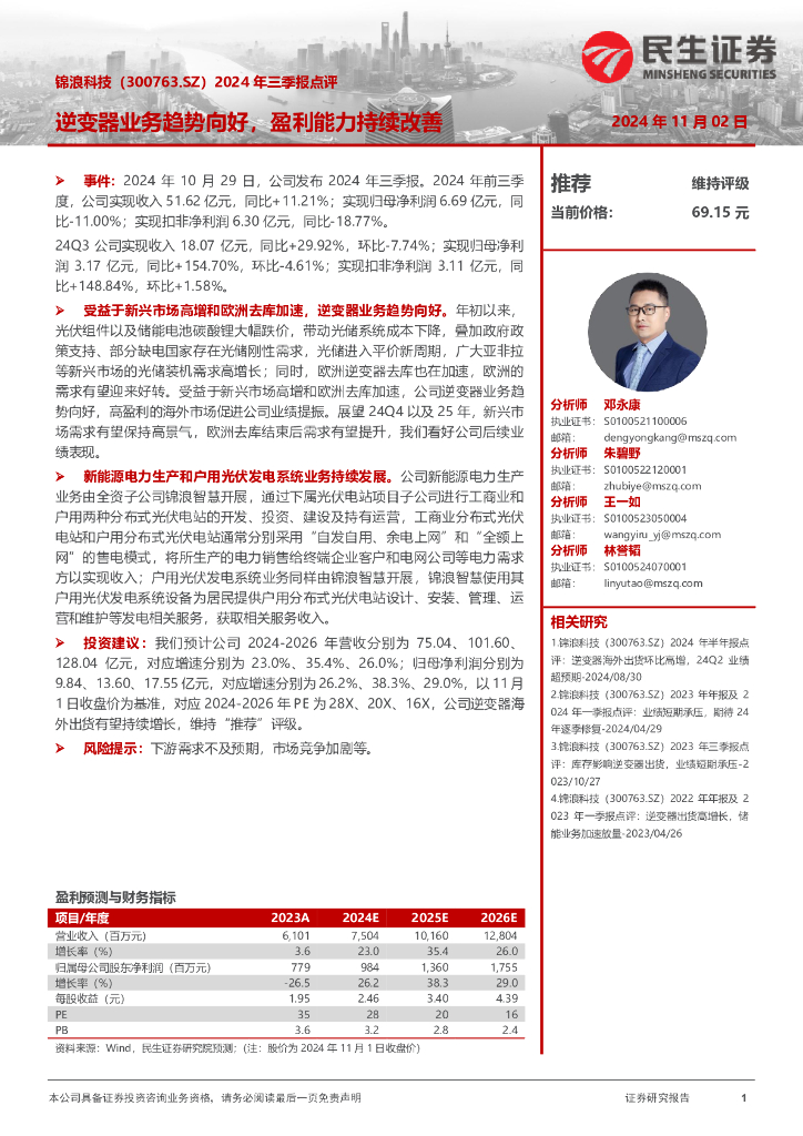 民生证券:锦浪科技(300763)-2024年三季报点评:逆变器业务趋势向好,盈利能力持续改善.pdf