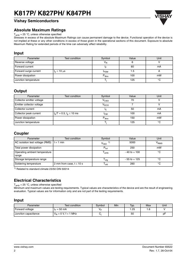 VISHAY - K817P/ K827PH/ K847PH 数据手册.pdf