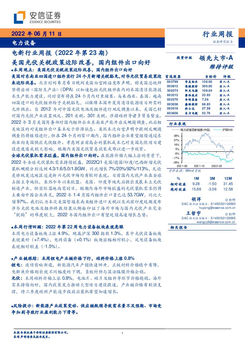 安信证券:电新行业周报(2022年第23期):美国光伏关税政策边际改善,国内组件出口向好.pdf