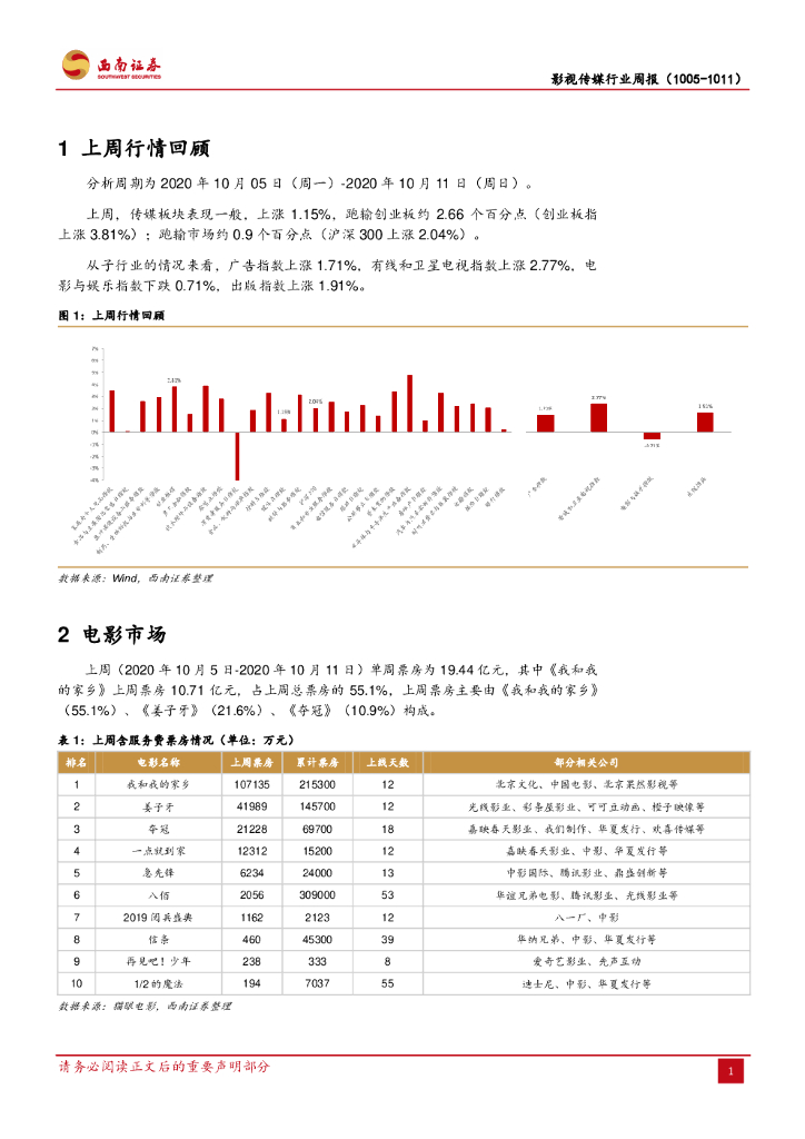西南证券:影视传媒行业周报:央视恢复播出NBA,《唐人街探案3》定档.pdf
