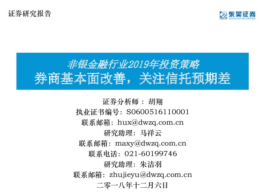 东吴证券:非银金融行业2019年投资策略:券商基本面改善,关注信托预期差.pdf