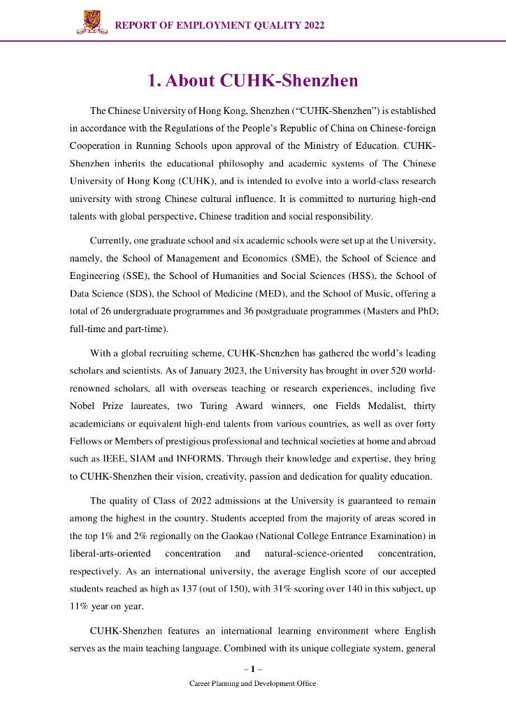 香港中文大学(深圳)2022届本科毕业生就业质量报告(英文版).pdf