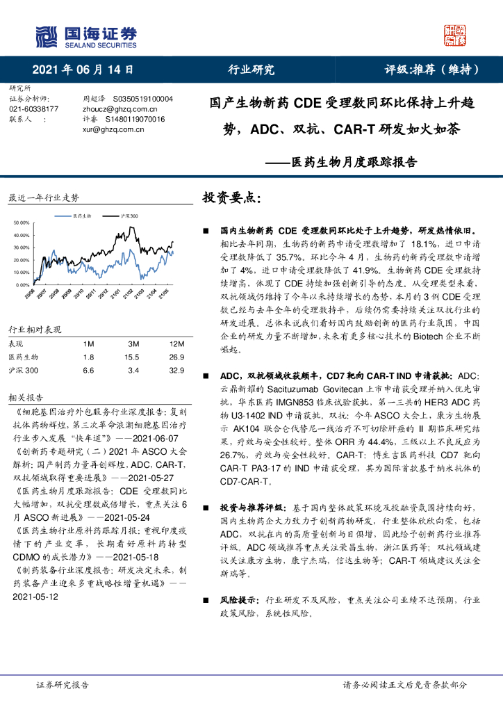 国海证券:医药生物月度跟踪报告:国产生物新药CDE受理数同环比保持上升趋势,ADC、双抗、CAR-T研发如火如荼.pdf