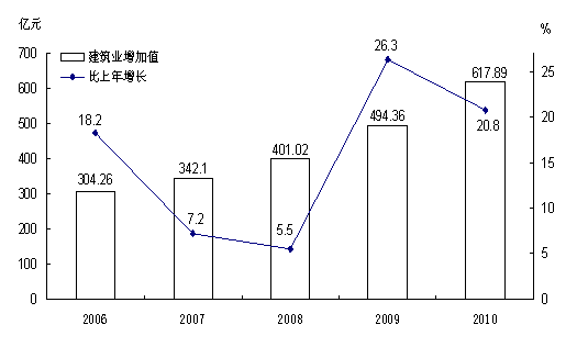 图4 2006-2010年云南省建筑业增加值及其增长速度