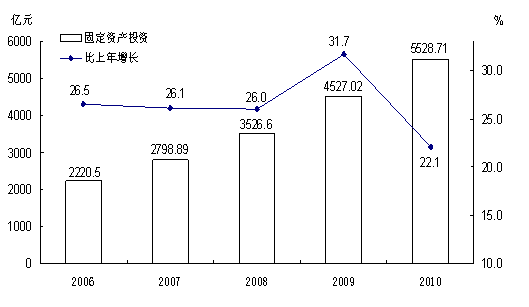 图5 2006-2010年云南省全社会固定资产投资及其增长速度