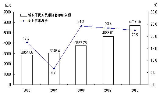 图8 2006-2010年云南省城乡居民人民币储蓄存款余额