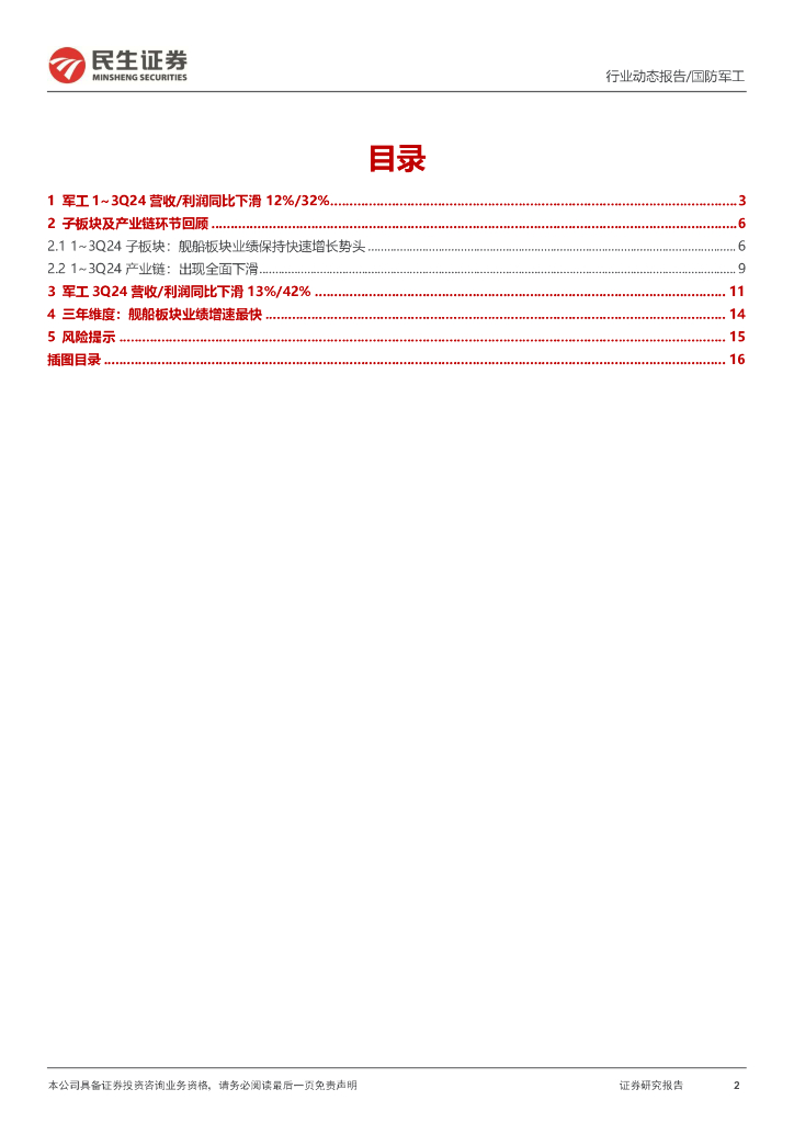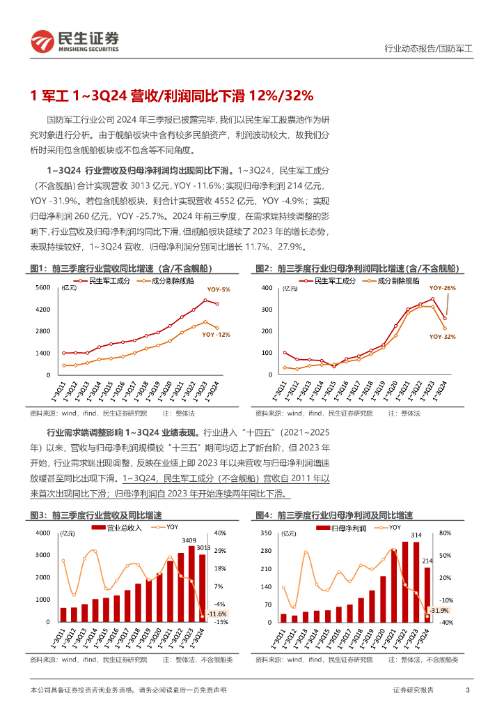 民生证券:军工行业2024年三季报业绩回顾:“业绩底”正在形成;珠海航展催化行情.pdf