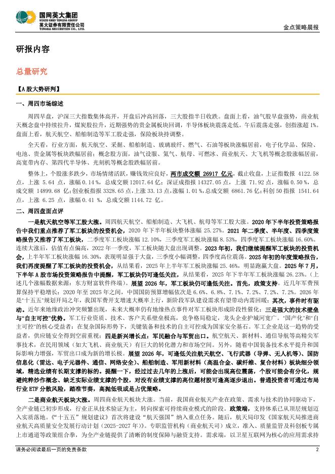 英大证券:金点策略晨报:A股有降温但热情未完全消退,结构性行情特征或将持续-260123.pdf