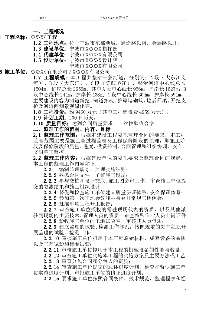 河道整治绿化工程监理规划(45页).doc