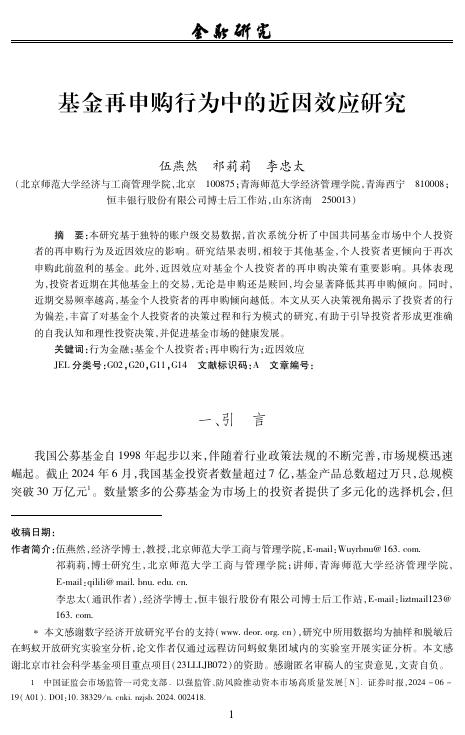 伍燕然:基金再申购行为中的近因效应研究.pdf