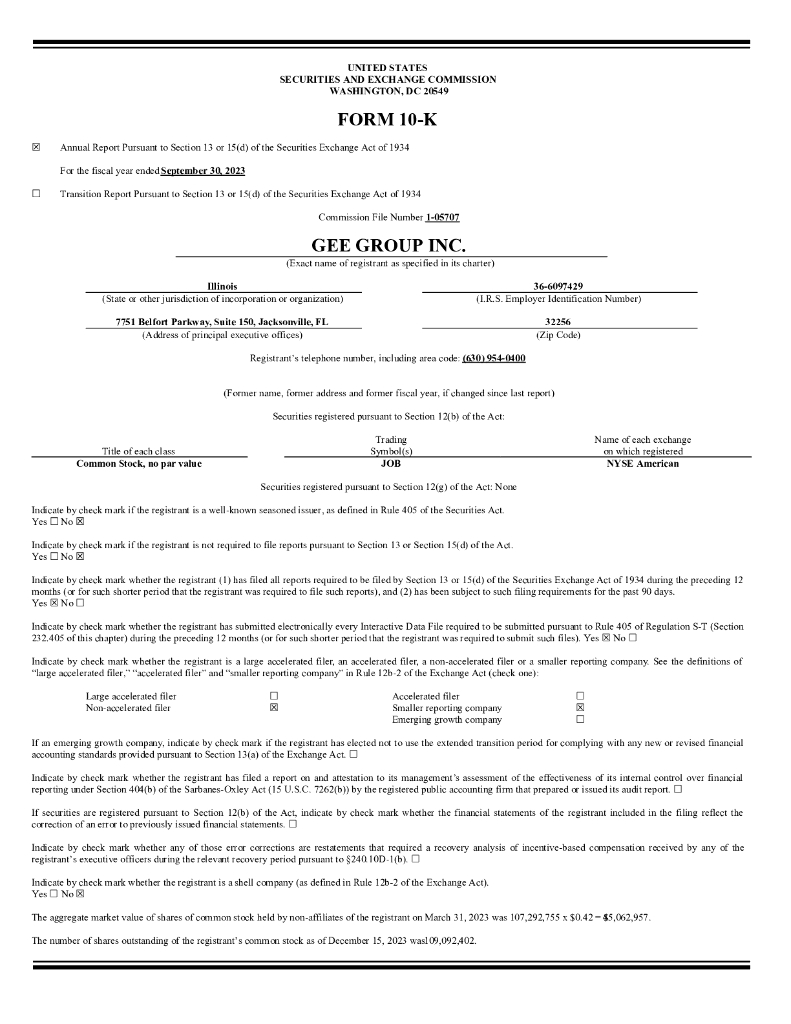 GEE Group Inc.(JOB)2023财年年度报告(英文版).pdf