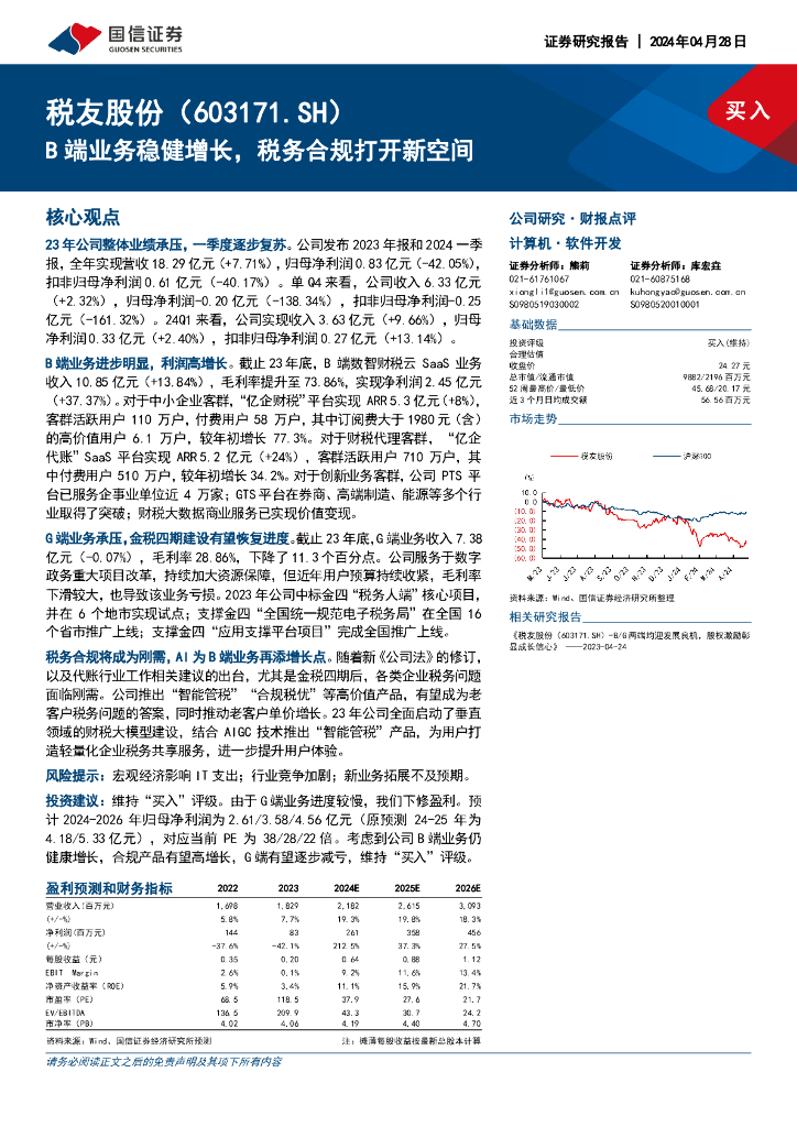 国信证券:税友股份(603171)-B端业务稳健增长,税务合规打开新空间.pdf