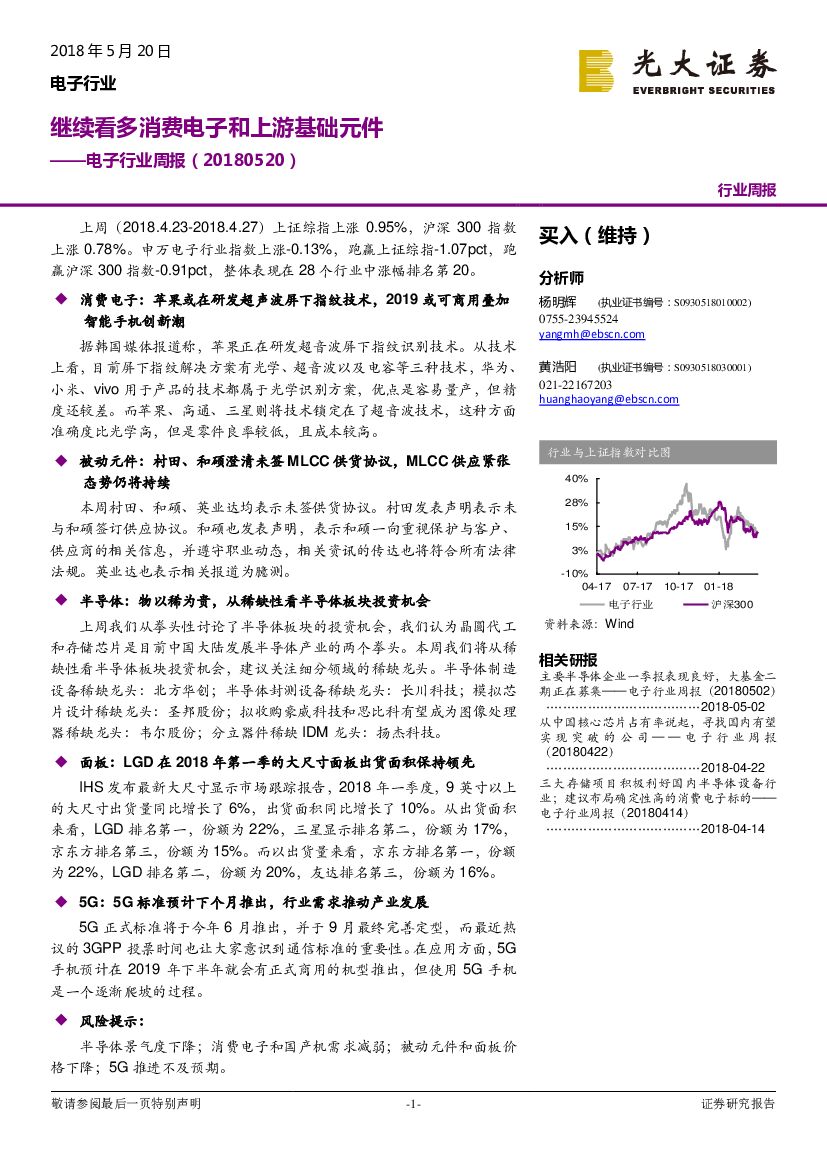 光大证券:电子行业周报:继续看多消费电子和上游基础元件.pdf