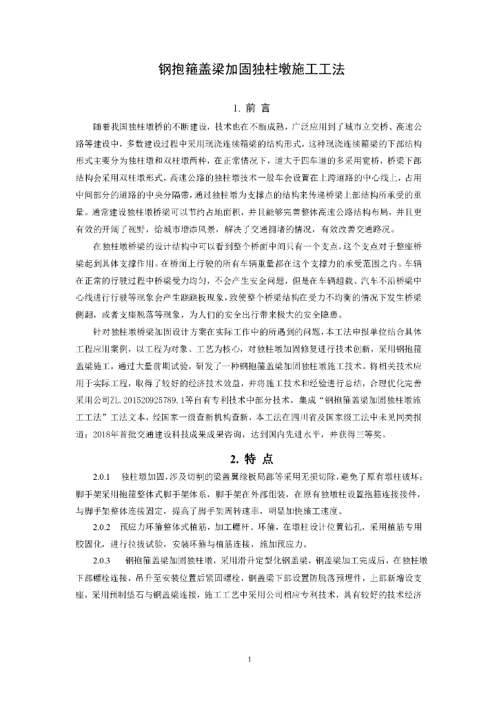钢抱箍盖梁加固独柱墩施工工法10页.pdf