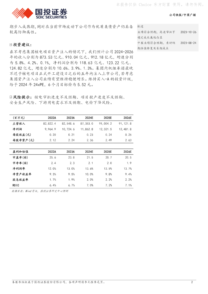 国投证券:中国广核(003816)-业绩小幅增长,项目储备再上台阶.pdf