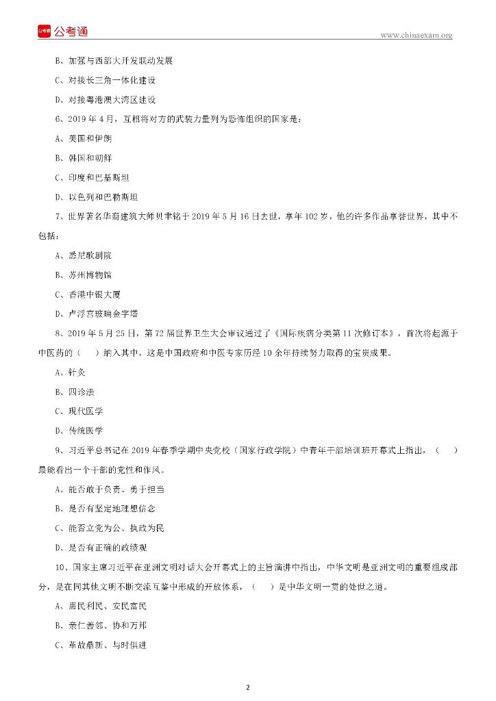 2019年山西省直部分事业单位考试《综合知识》真题(下午场).pdf