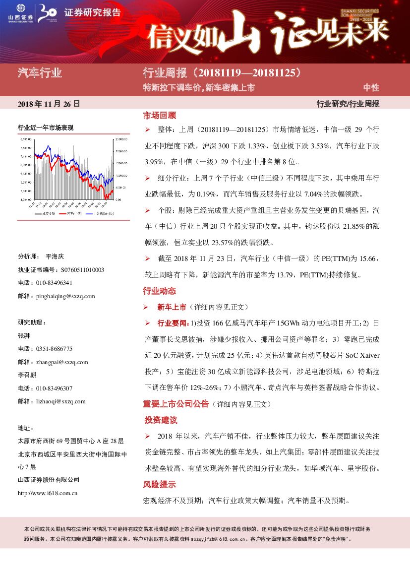 山西证券:汽车行业周报:特斯拉下调车价,新车密集上市.pdf