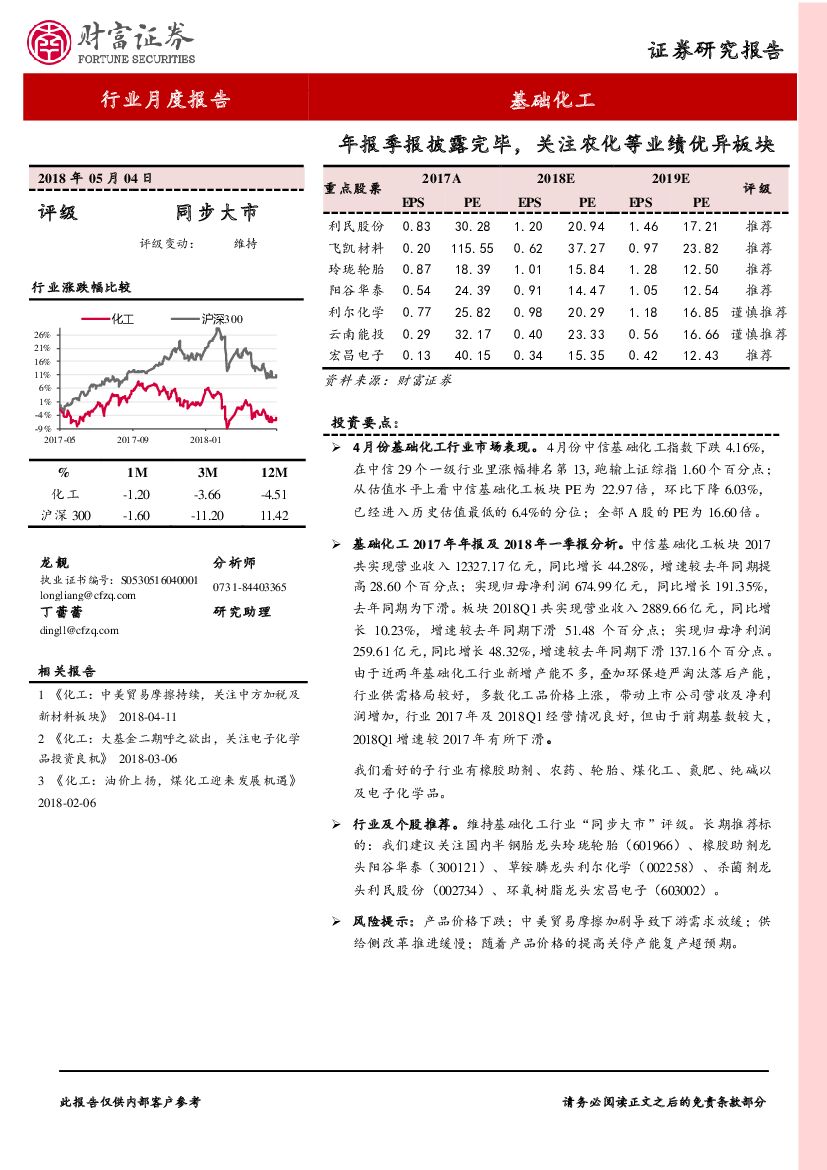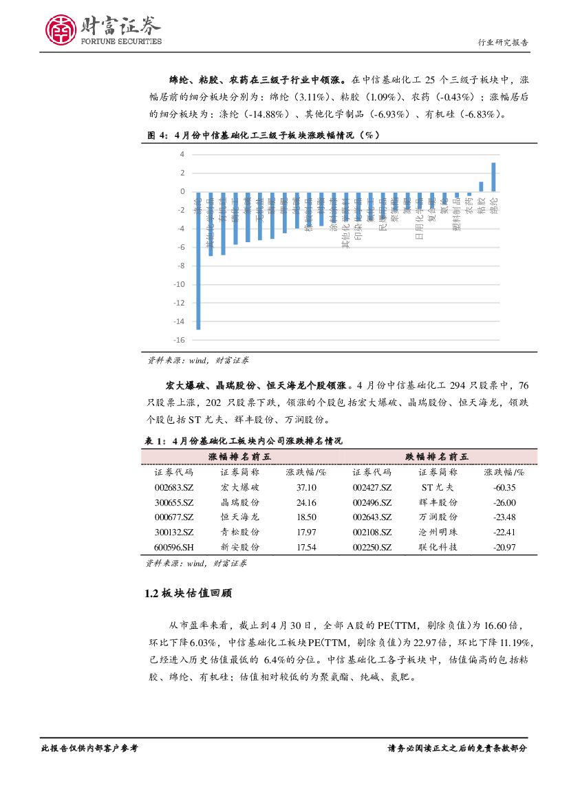 财富证券:基础化工行业月度报告:年报季报披露完毕,关注农化等业绩优异板块.pdf