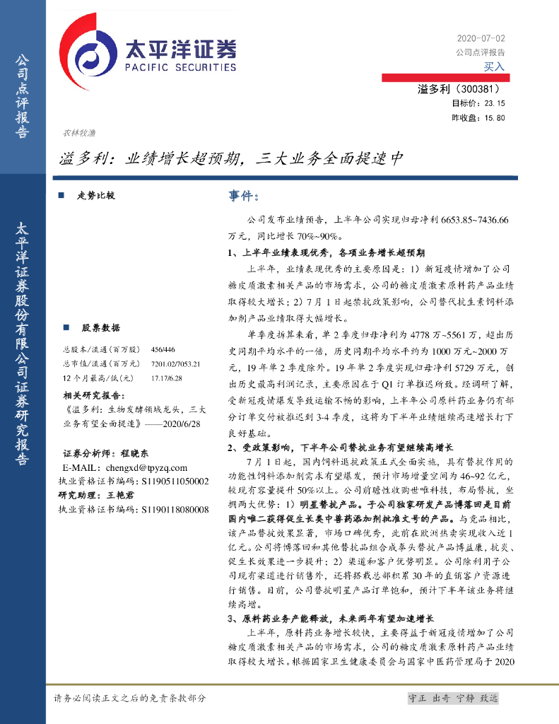 太平洋证券:溢多利:业绩增长超预期,三大业务全面提速中.pdf