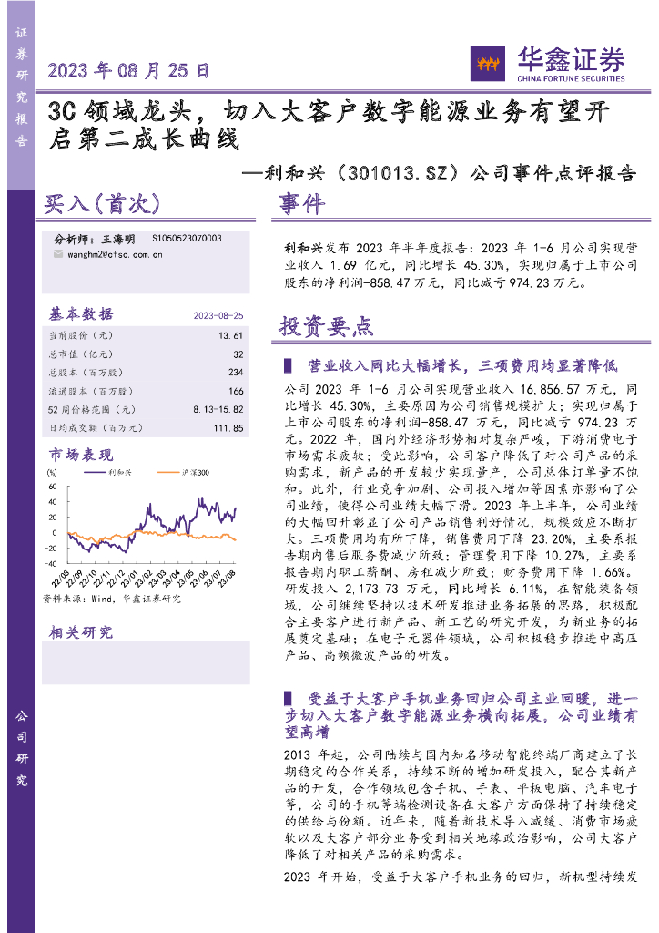 华鑫证券:利和兴(301013)-公司事件点评报告:3C领域龙头,切入大客户数字能源业务有望开启第二成长曲线.pdf