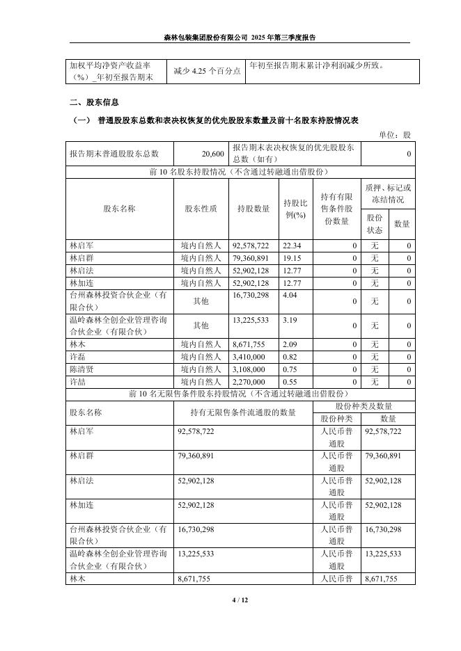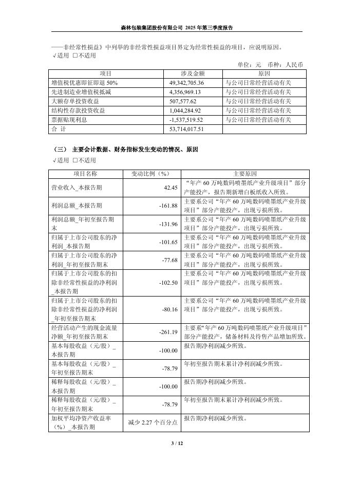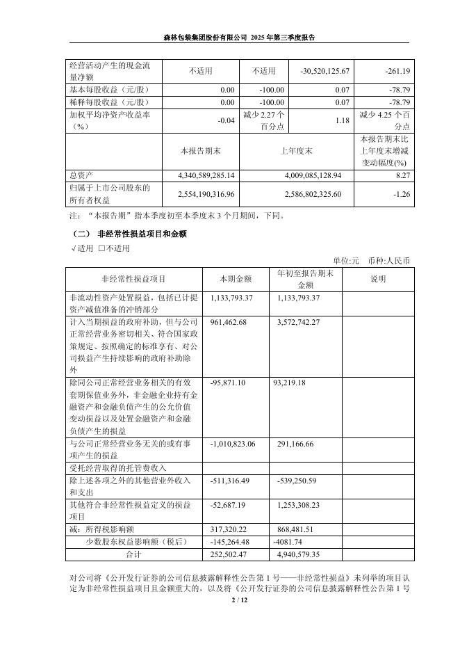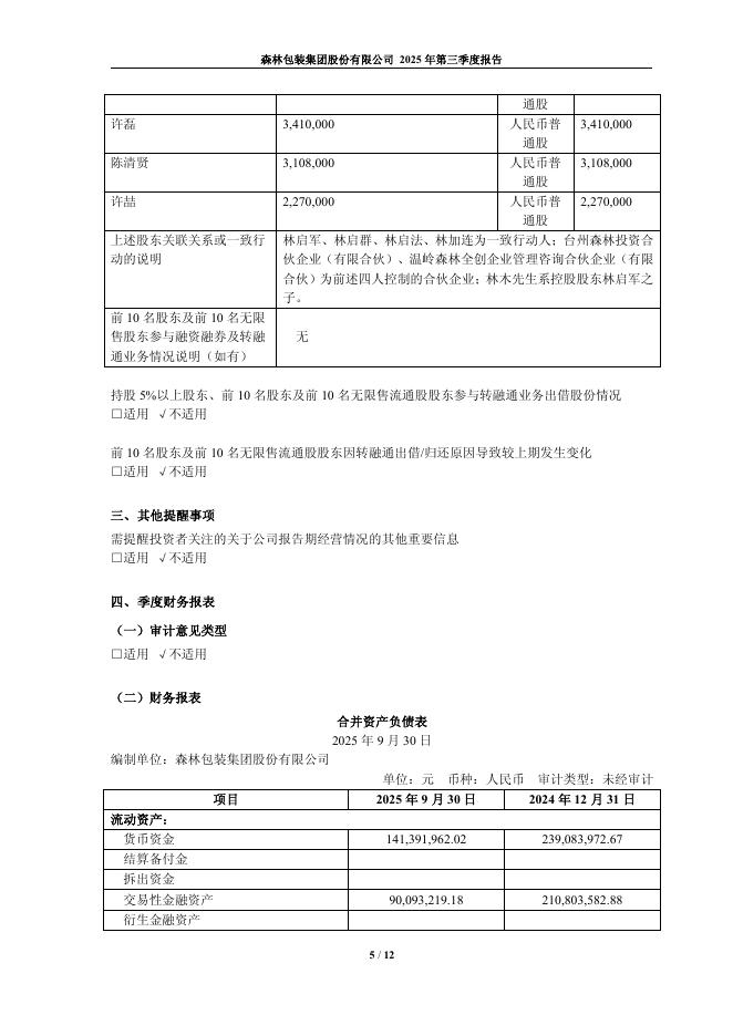 605500-森林包装:森林包装集团股份有限公司2025年第三季度报告.pdf