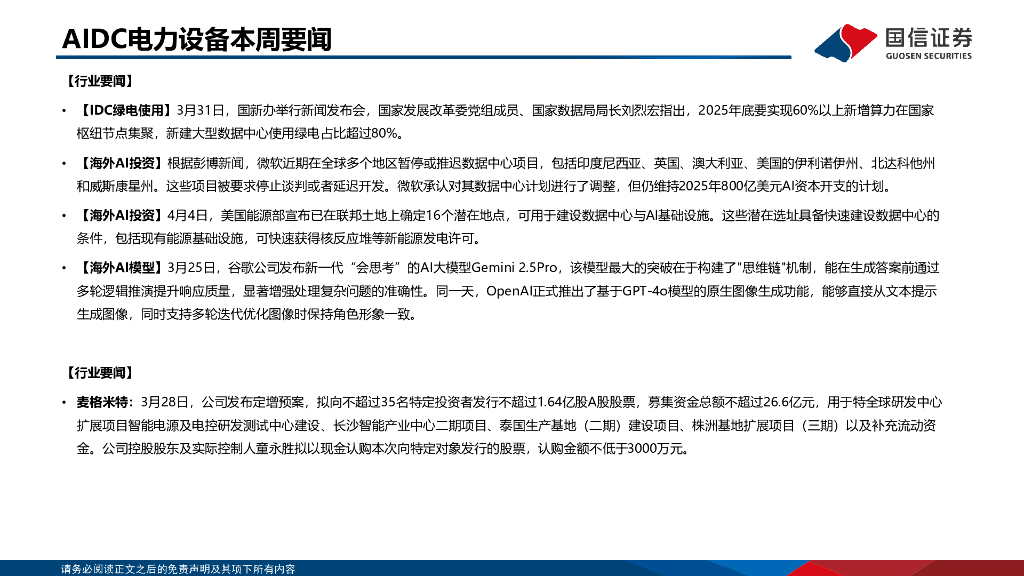 国信证券:AIDC电力设备/电网产业链周评(4月第1周):电价市场化改革持续推进,电网投资内需保持强劲.pdf