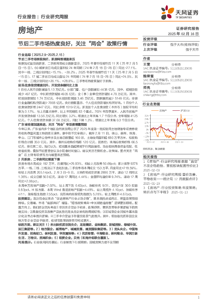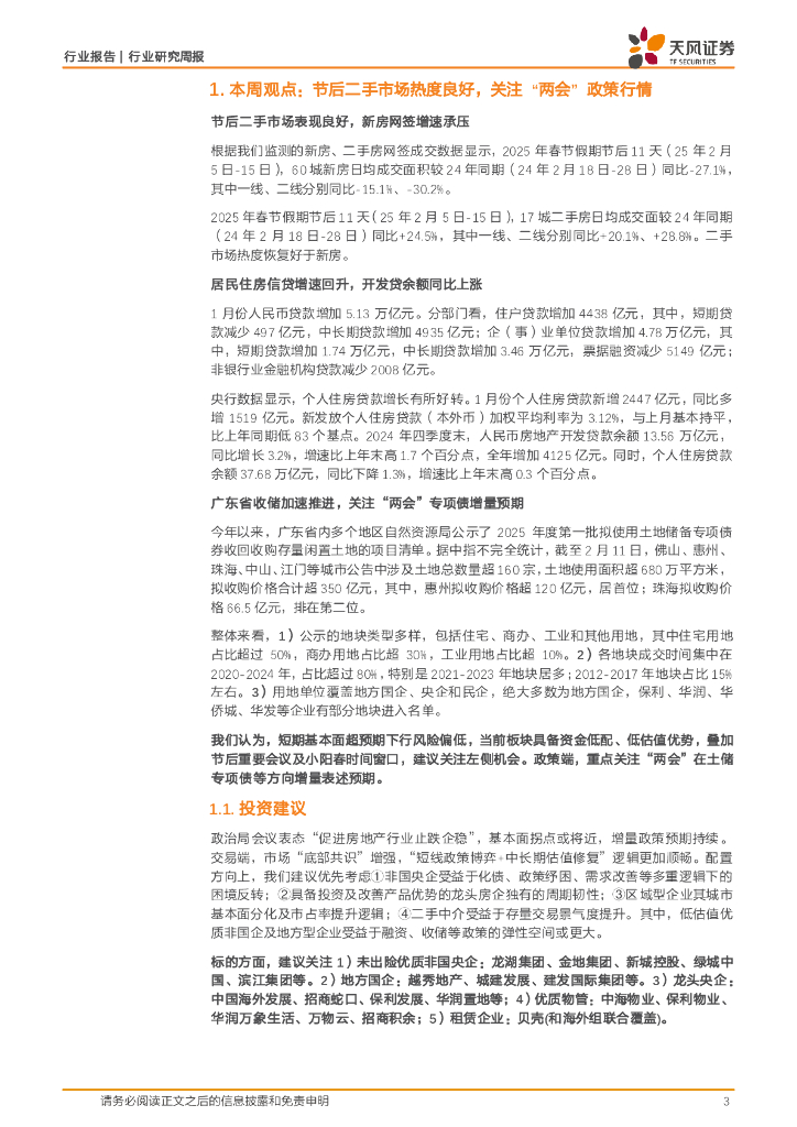 天风证券:房地产行业研究周报:节后二手市场热度良好,关注“两会”政策行情.pdf