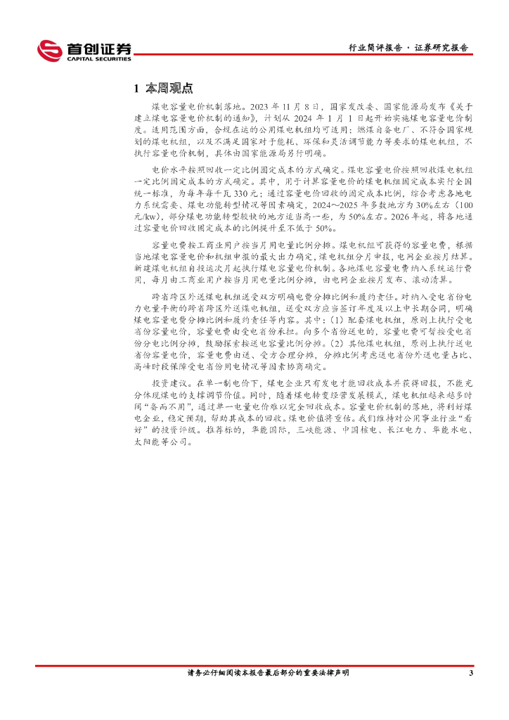 首创证券:公用事业行业简评报告:容量电价机制有助煤电价值重估.pdf