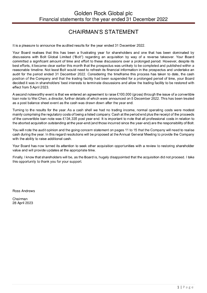 Golden Rock Global Plc(GCG)2022财年年度报告(英文版).pdf