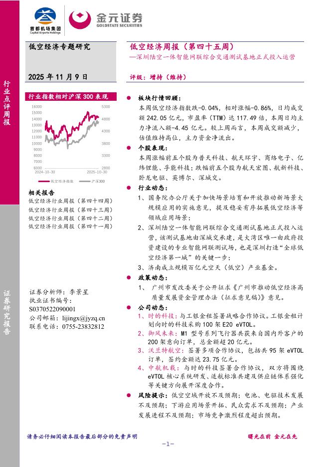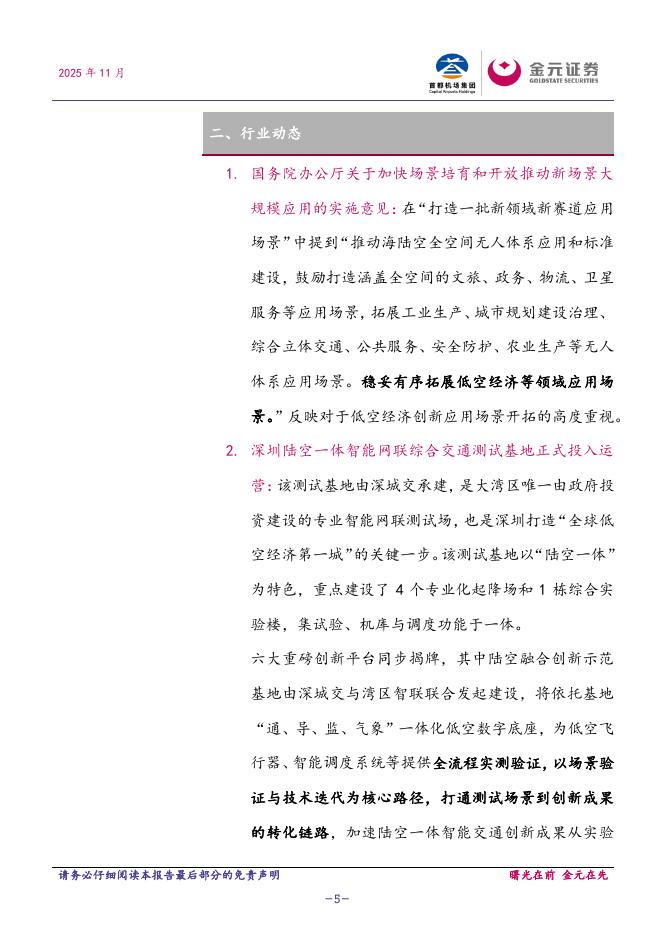 金元证券:低空经济周报(第四十五周):深圳陆空一体智能网联综合交通测试基地正式投入运营.pdf