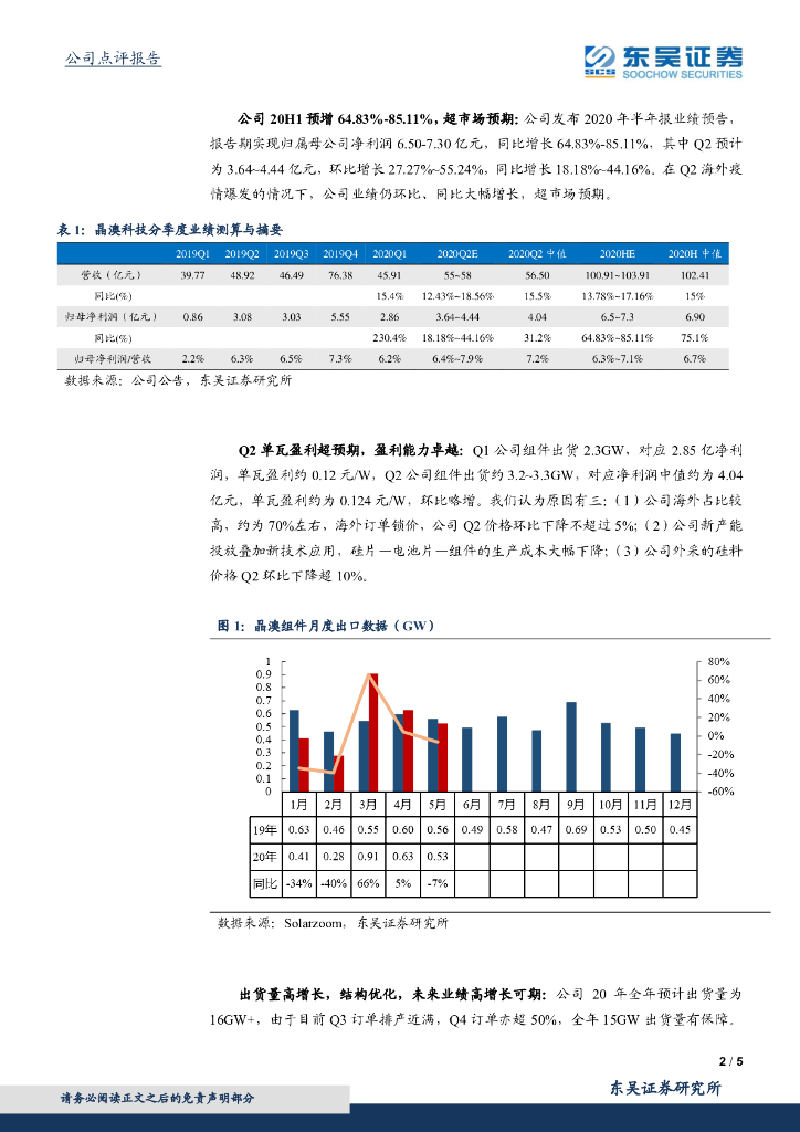 东吴证券:半年报业绩预告点评:晶澳科技20H1业绩大增,一体化龙头盈利能力卓越,重点推荐!.pdf