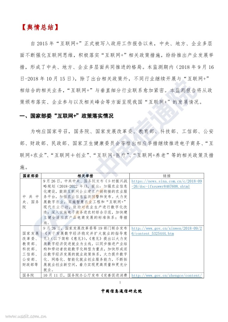 中国信通院:2018年10月“互联网+”发展情况舆情监测.pdf