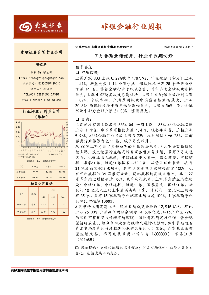 爱建证券:非银金融周报:7月券商业绩优异,行业中长期向好.pdf