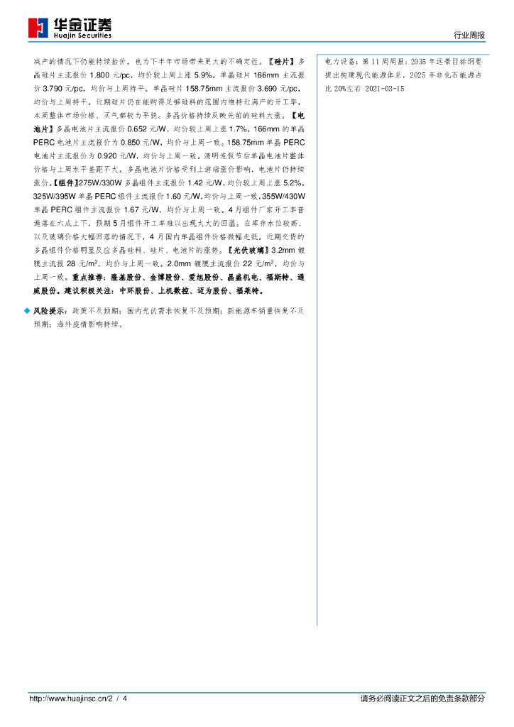 华金证券:电力设备第15周周报:中环单晶硅片价格上调,拜登政府计划1000亿美元用于电动车消费者补贴.pdf