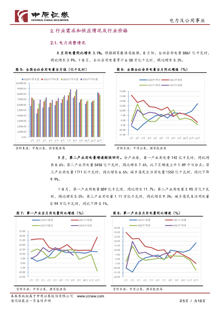 中原证券:电力及公用事业行业月报:8月第二产业用电量及水电发电量回暖,我国国民经济恢复向好.pdf