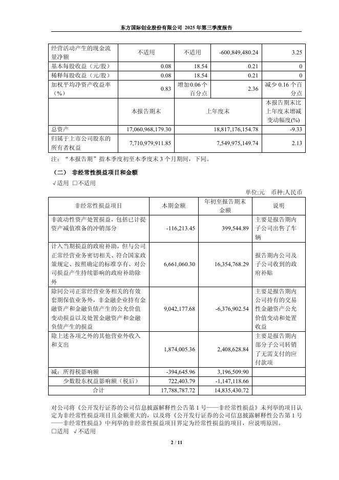 600278-东方创业:东方国际创业股份有限公司2025年第三季度报告.pdf