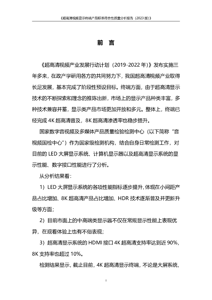 电子标准院:超高清视频显示终端产品标准符合性质量分析报告(2023版) .pdf